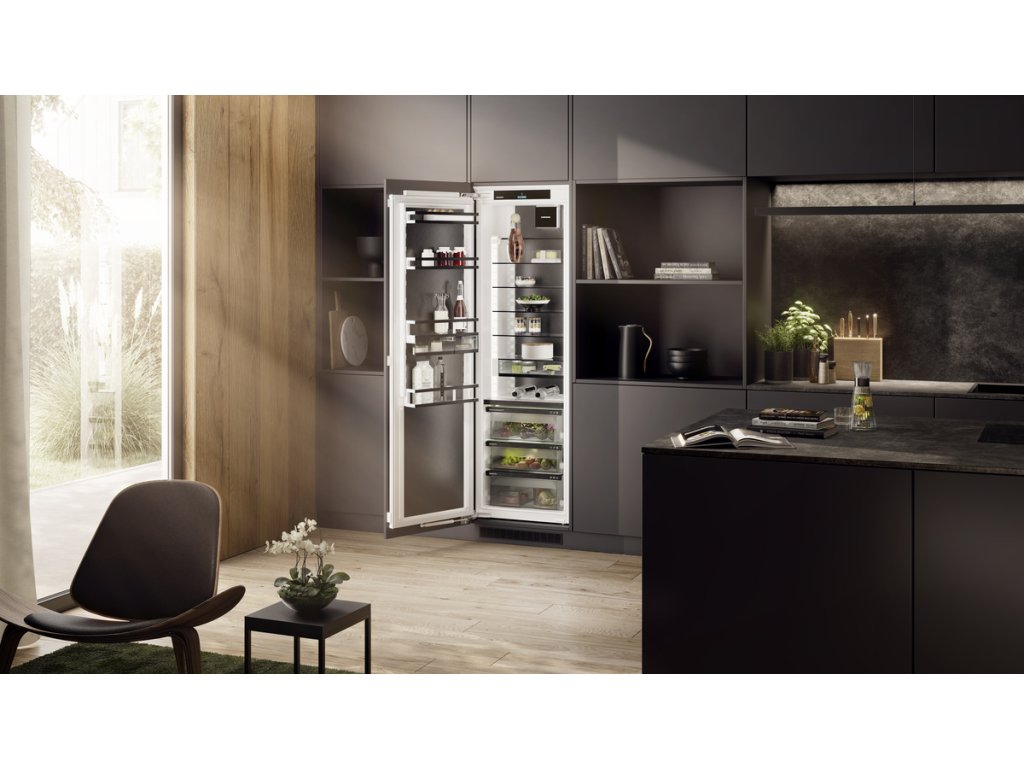 Svetlo mimoriadne podčiarkuje dizajn – aj vo vašej chladničke: s naším ambientným osvetlením. Osvetlenie po celom obvode jedinečným spôsobom dotvára vnútorný priestor. A spolu so zadnou stenou s úpravou SmartSteel a tiež s ventilátorom v čiernom lesklom vyhotovení tak vzniká pôsobivá atmosféra.